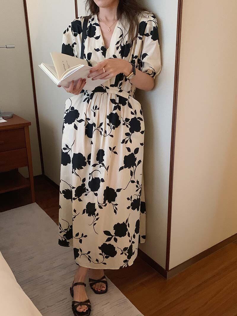 ワンピース 花柄ワンピース フラワー バイカラー Aラインワンピース フレアワンピース ロングワンピース ロング丈 ミモレ丈 ウエストマーク ギャザー リボン Vネック 半袖 パフスリーブ ゆったり レディース 可愛い きれいめ シンプル カジュアル 大人 かわいい おしゃれ お洒落 上品 フェミニン 大人可愛い 大人女子 春 夏 10代 20代 30代 40代 デート お出かけ 女子会 通勤 リゾート 海 ビーチ デイリー 普段着 | Chère