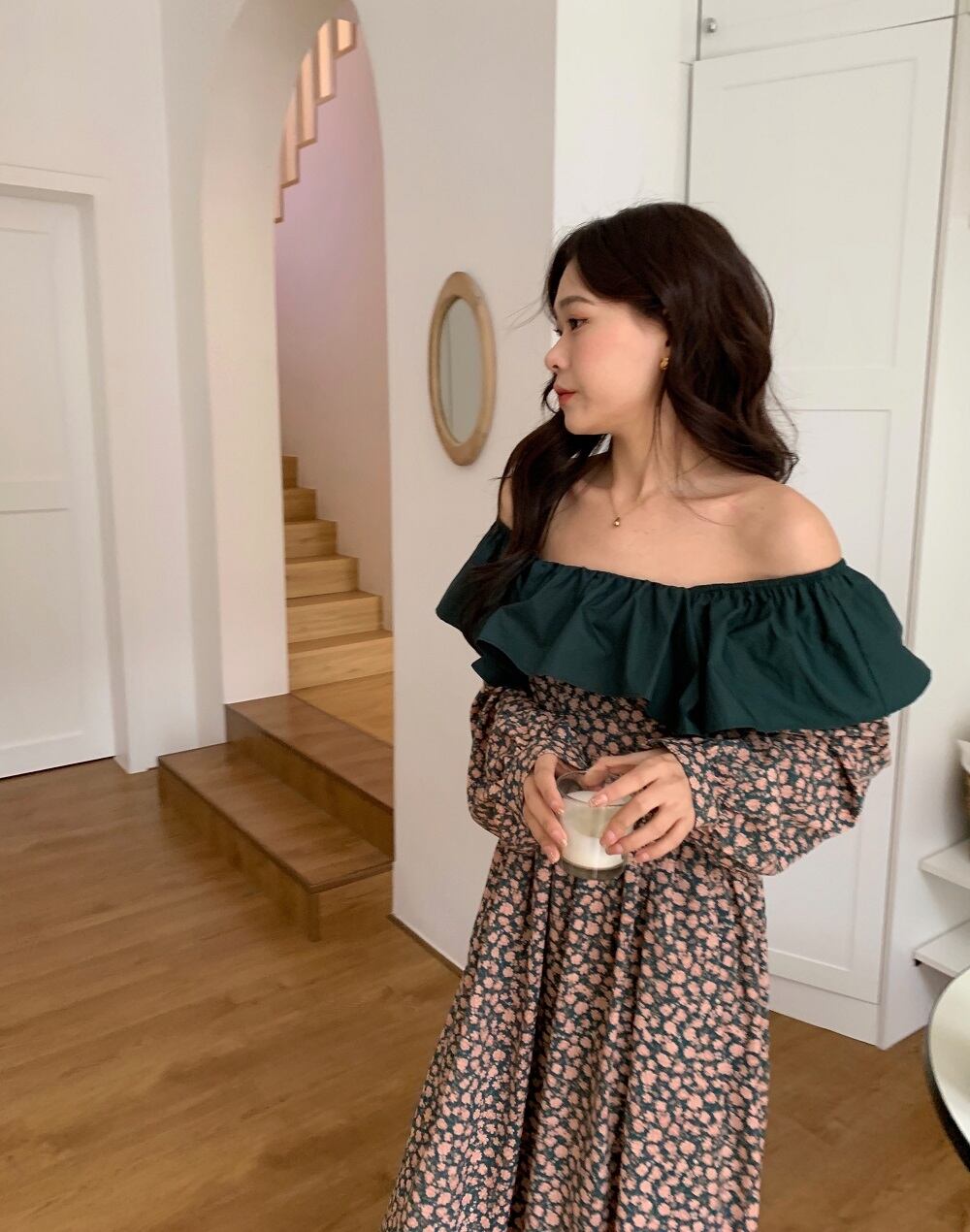 (2色選択可) ワンピース 花柄ワンピース フラワー オフショルダー 2way 肩出し Aラインワンピース フレアワンピース ロングワンピース ロング丈 ミモレ丈 ウエストギャザー フリル スクエアネック 長袖 パフスリーブ ゆったり レディース 可愛い きれいめ シンプル カジュアル 大人 かわいい おしゃれ お洒落 上品 フェミニン ガーリー 大人可愛い 大人女子 春 夏 10代 20代 30代 40代 デート お出かけ 女子会 デイリー 普段着 ブラック 黒色 グリーン 緑色 | Chère