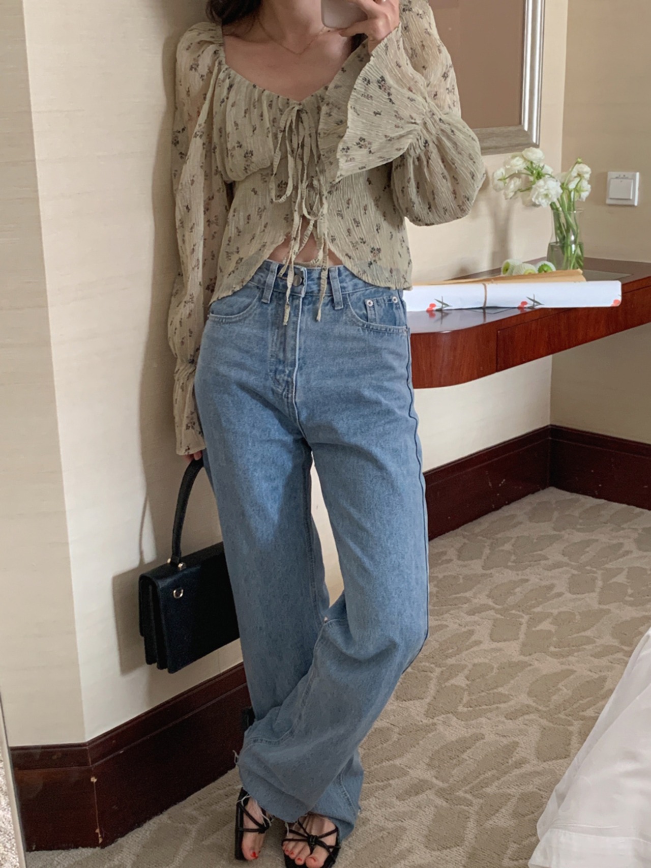 ナチュラルな印象の花柄の大人可愛いシフォンブラウス。