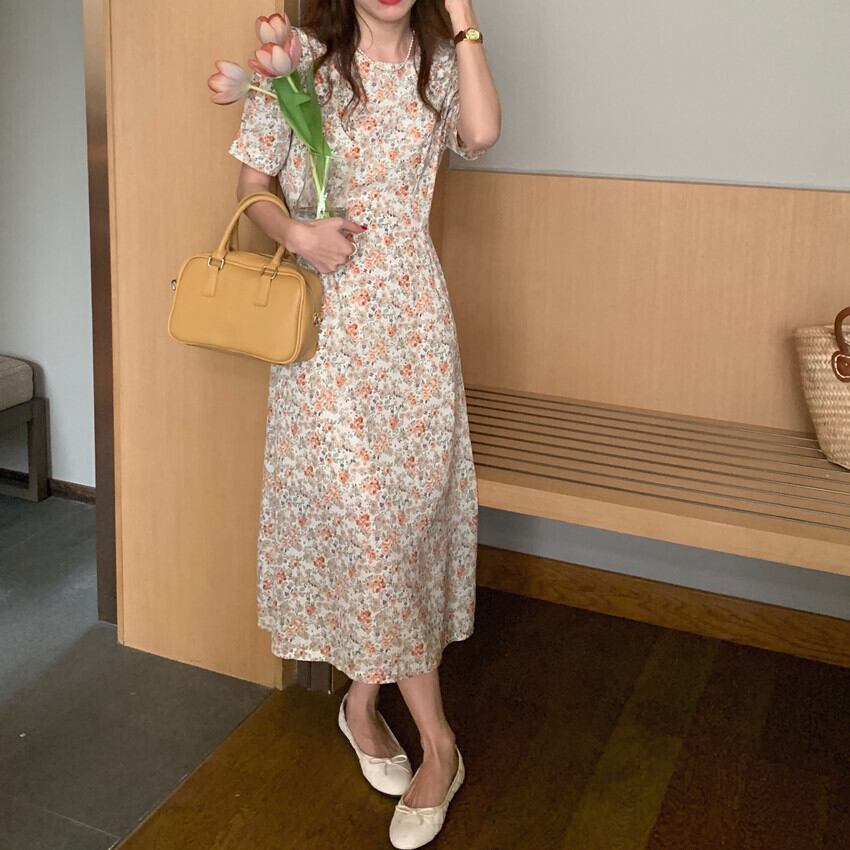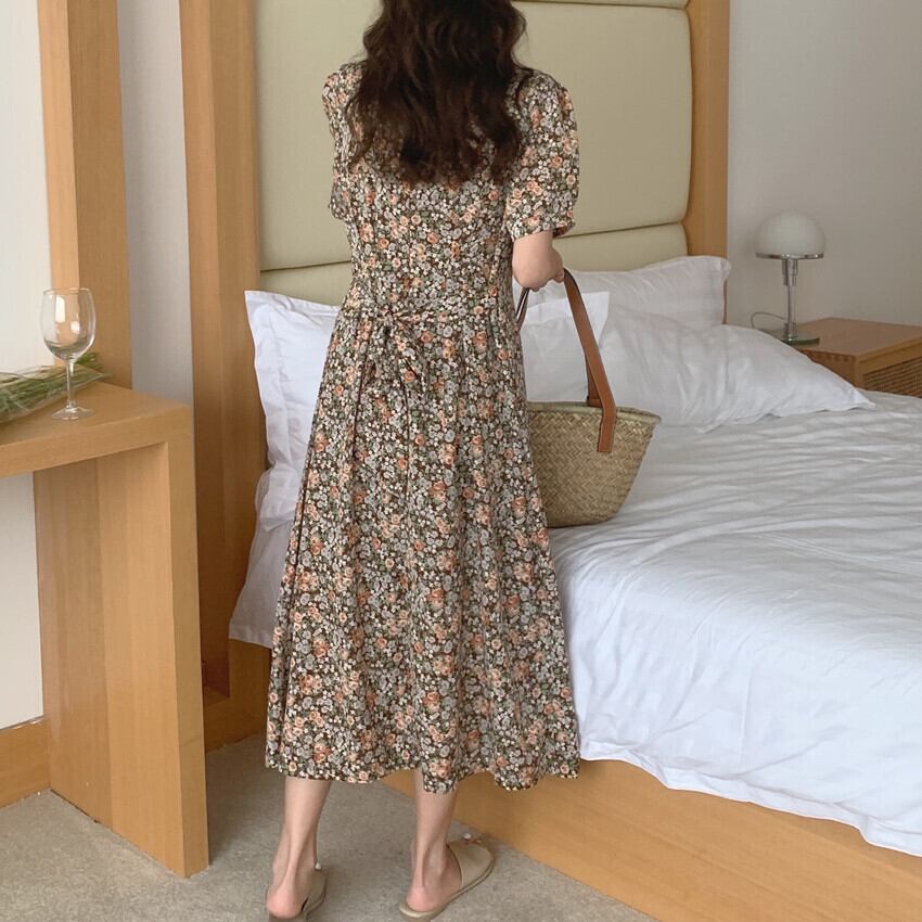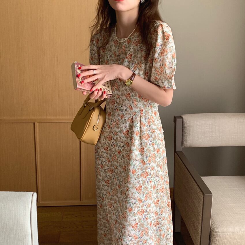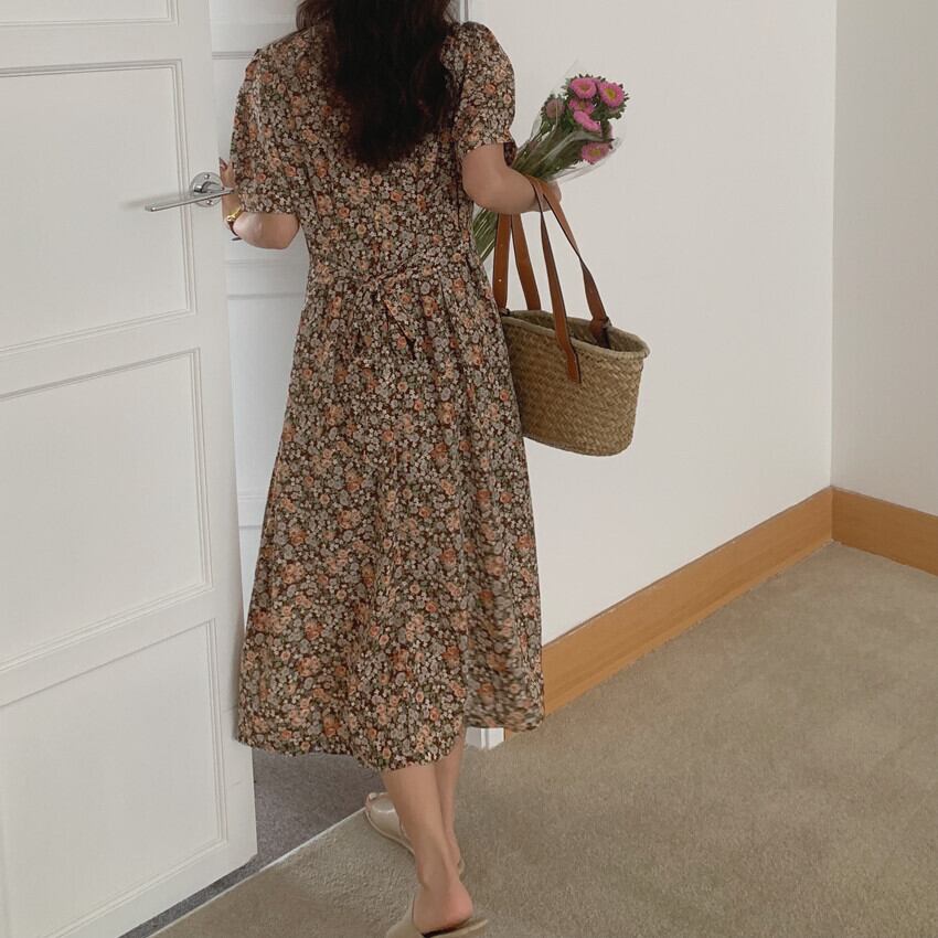 (2色選択可) ワンピース 花柄ワンピース フラワー Aラインワンピース フレアワンピース ロングワンピース ロング丈 ミモレ丈 ウエストタック リボン ラウンドネック 半袖 パフスリーブ ゆったり レディース 可愛い きれいめ シンプル カジュアル 大人 かわいい おしゃれ お洒落 上品 フェミニン ガーリー 大人可愛い 大人女子 春 夏 10代 20代 30代 40代 デート お出かけ 女子会 パーティー フォーマル デイリー 普段着 ベージュ ブラウン | Chère