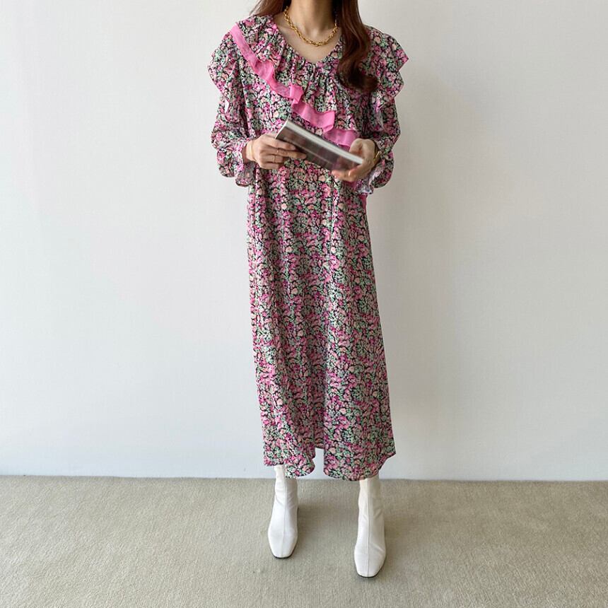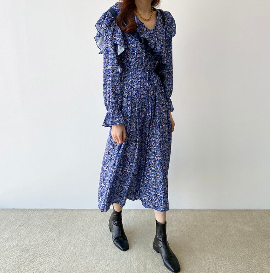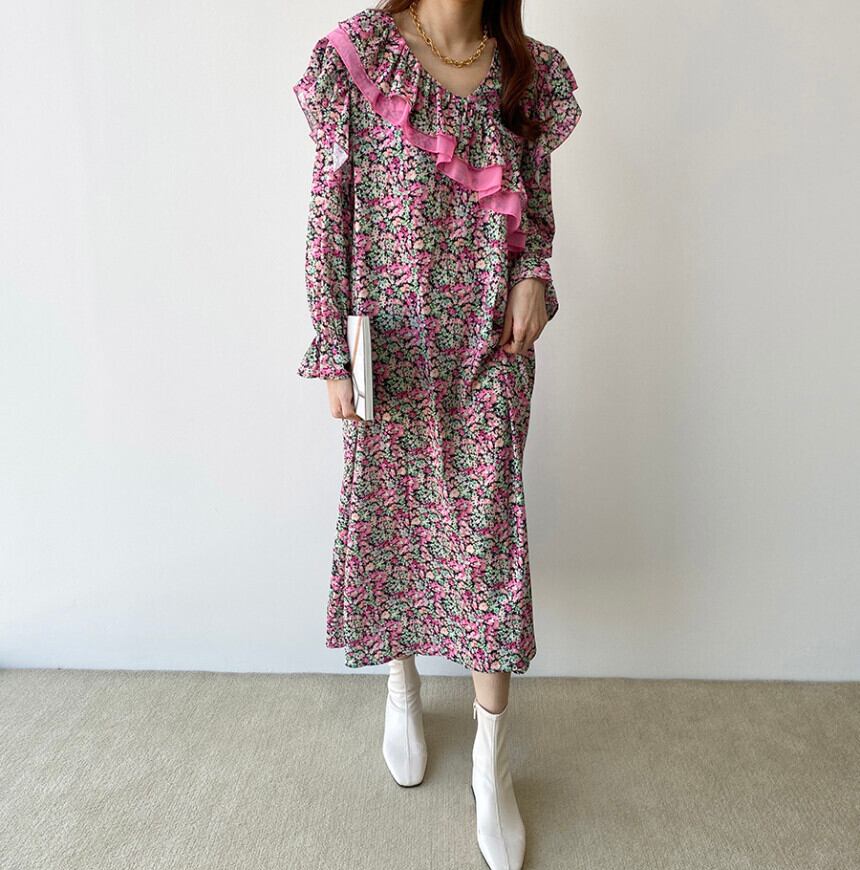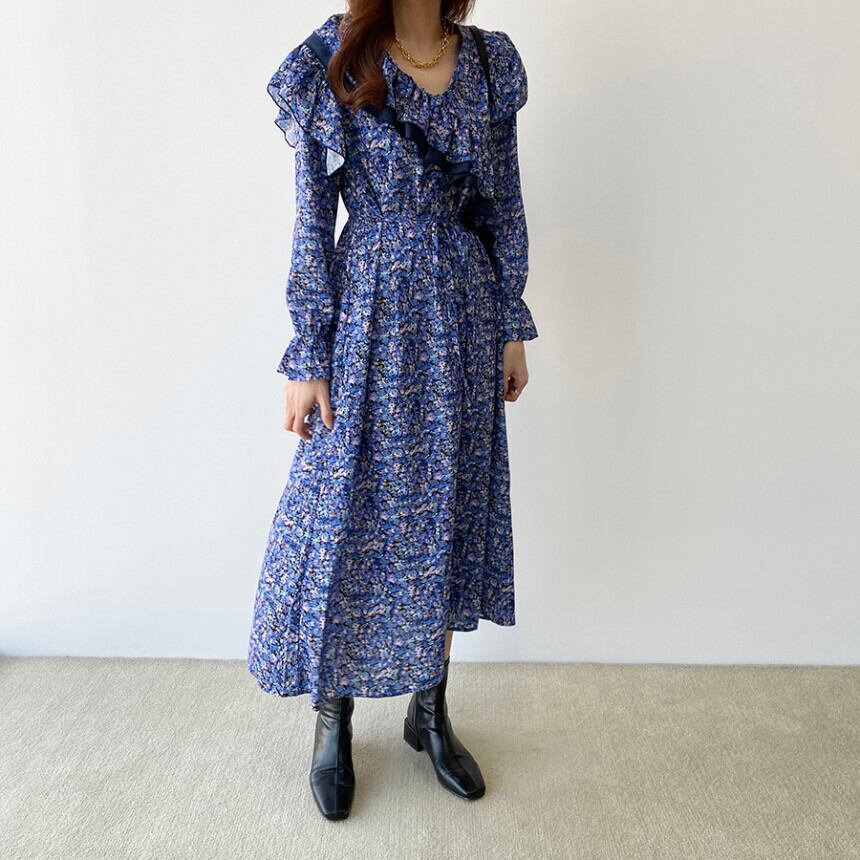 (2色選択可) ワンピース 花柄ワンピース フラワー Aラインワンピース フレアワンピース ロングワンピース ロング丈 ミモレ丈 フリル アシンメトリー 不規則 ウエストギャザー リボン Vネック 半袖 キャンディースリーブ ゆったり レディース 可愛い きれいめ シンプル カジュアル 大人 かわいい おしゃれ お洒落 上品 フェミニン ガーリー 大人可愛い 大人女子 春 秋 10代 20代 30代 40代 デート お出かけ 女子会 デイリー 普段着 ブルー 青色 ピンク | Chère