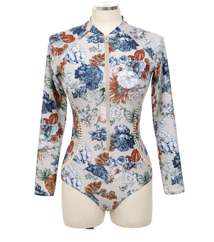 (サイズが選択可) 水着 ワンピース水着 パッド付き ワイヤーなし ジッパー 長袖 レディース フラワー 花柄 ブルー レトロ かわいい 個性的 セクシー カジュアル お洒落 大人カジュアル 大人っぽい おしゃれ 大人女子 大人可愛い M L XL 10代 20代 30代 40代 デート 旅行 トラベル お出かけ 海 海辺 プール ビーチ リゾート プールサイド 砂浜 バカンス 韓国 インスタ映え 美スタイル 体型カバー 二の腕カバー プチプラ 韓国系 | Chère