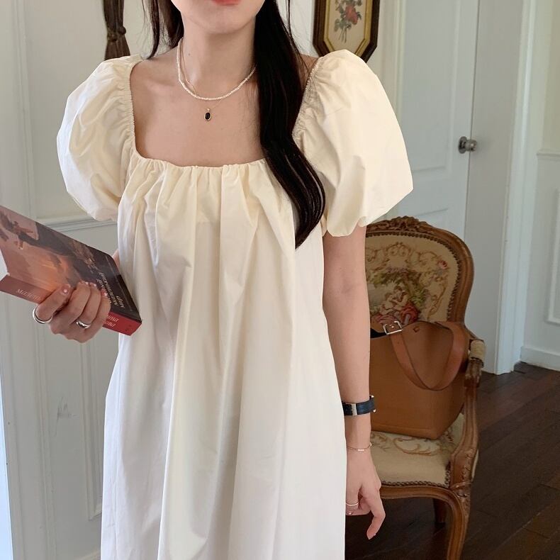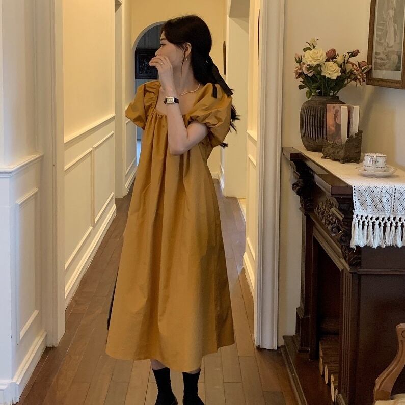 (3色選択可) ワンピース ロング ロング丈 パフスリーブ 萌袖 袖あり スクエアネック 無地 白 ホワイト 青 ブルー カーキ バックコンシャス かわいい 大人可愛い きれいめ シンプル 大人 上品 おしゃれ お洒落 レトロ アジアン 大人可愛い 大人女子 こなれ感 ラフ ラブリー キュート ガーリー ルーズ フリーサイズ ゆったり ゆる パステルカラー 春カラー 春 夏 10代 20代 30代 40代 レディース ママ マタニティ 学生 デート お出かけ 普段使い 楽ちん 体系カバー | Chère