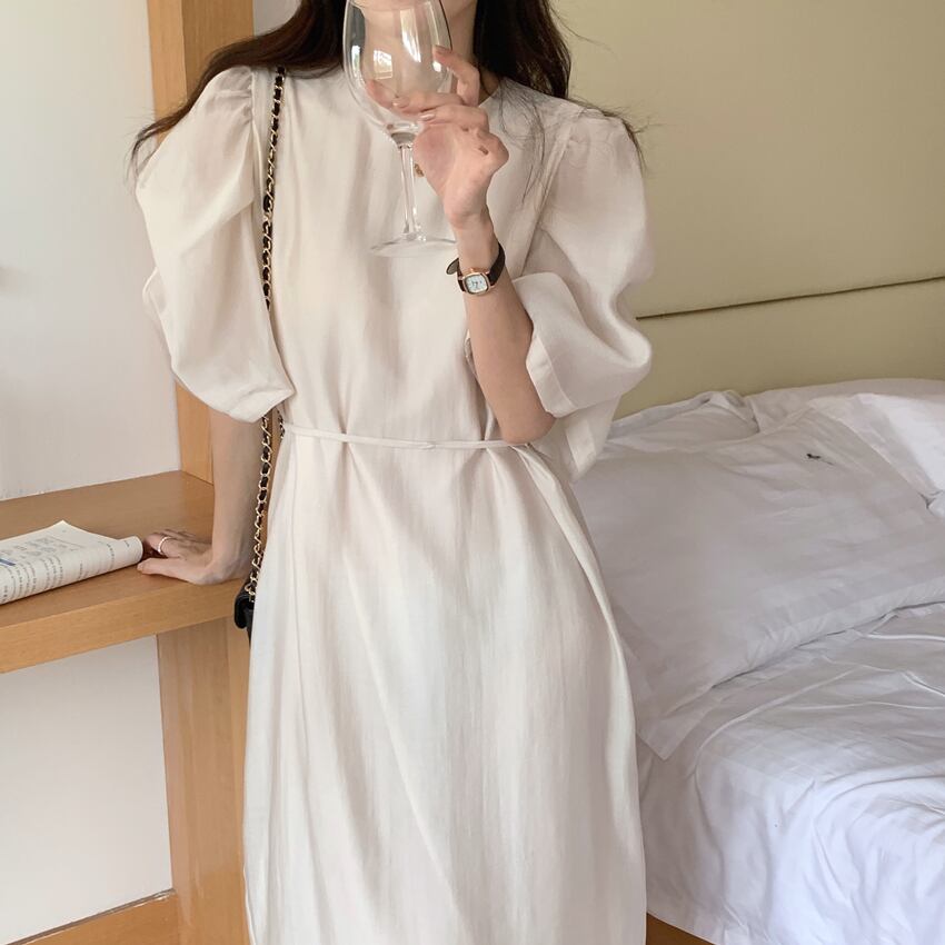 (3色選択可) ワンピース レディース フレア ウエストマーク ドローストリング ミモレ丈 パフスリーブ ラウンドネック 半袖 五分袖 透け感 ギャザー ハイウエスト タック 襟付き レトロ かわいい 大人可愛い きれいめ 上品 おしゃれ お洒落 レ大人女子 ラブリー キュート ガーリー 主役級 存在感 小花柄 春 夏 10代 20代 30代 学生 通学 デート お泊まり リゾート 旅行 ホテル ガーデン レストラン 着回し 韓国系 プレゼント トレンド インスタ映え ホワイト ベージュ ブラウン | Chère