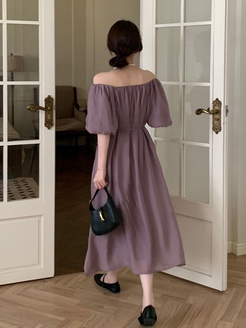 (4色選択可) ワンピース オフショルダー Aラインワンピース フレアワンピース ロングワンピース ロング丈 ミモレ丈 ギャザー リボン スクエアネック 半袖 パフスリーブ ボリューム袖 無地 ゆったり レディース 可愛い きれいめ シンプル カジュアル 大人 かわいい おしゃれ お洒落 上品 フェミニン ガーリー 大人可愛い 大人女子 春 夏 10代 20代 30代 40代 デート お出かけ 女子会 デイリー 普段着 イエロー ピンク ブラック パープル 黄色 黒色 紫色 | Chère