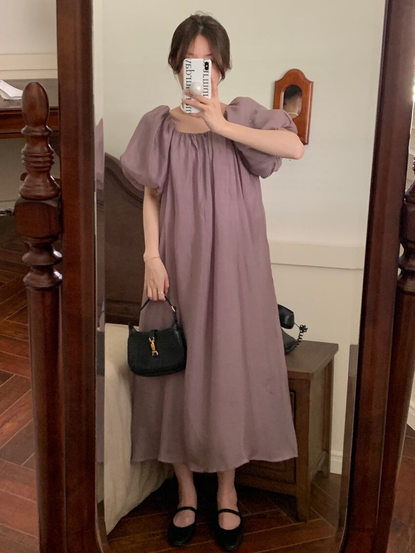 ふわりと広がるAラインシルエットにふんわりパフスリーブのフェミニンでおしゃれな1枚です◎