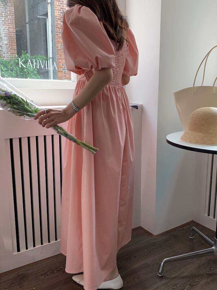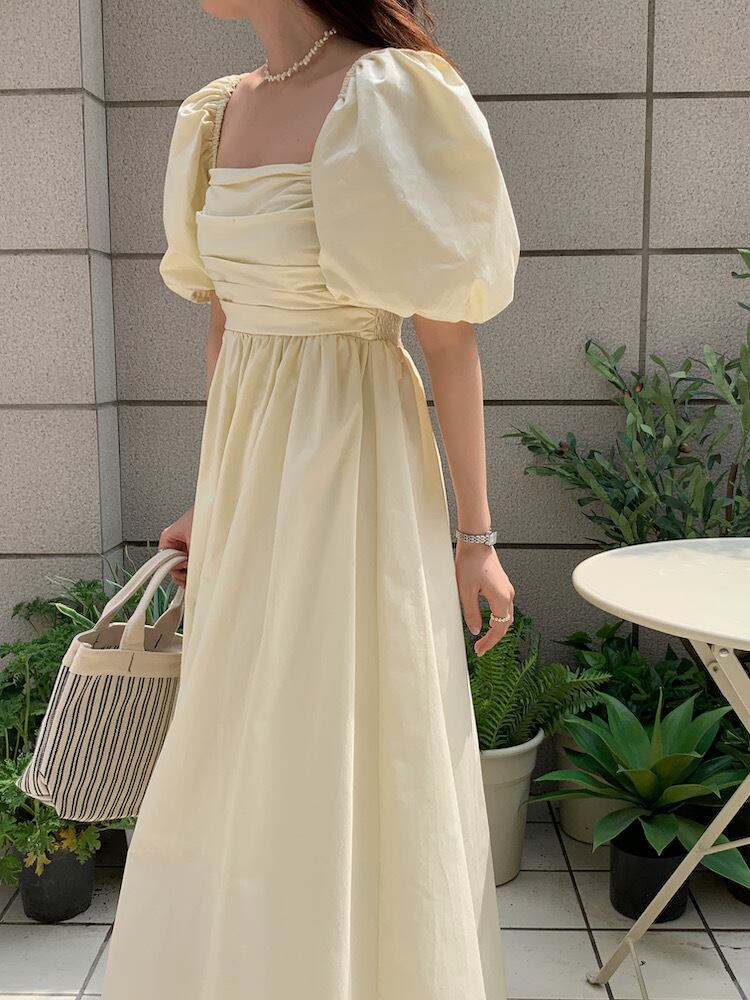 (2色選択可) ワンピース Aラインワンピース フレアワンピース ロングワンピース ロング丈 ミモレ丈 シャーリング ギャザー スクエアネック 半袖 パフスリーブ ボリューム袖 無地 ゆったり レディース 可愛い きれいめ シンプル カジュアル 大人 かわいい おしゃれ お洒落 上品 フェミニン ガーリー 大人可愛い 大人女子 春 夏 10代 20代 30代 40代 デート お出かけ 女子会 デイリー 普段着 イエロー ピンク 黄色 | Chère