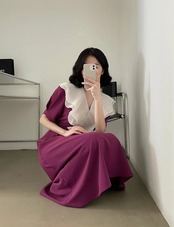 ふわりと広がるAラインシルエットにふんわりパフスリーブのフェミニンでおしゃれな1枚です◎