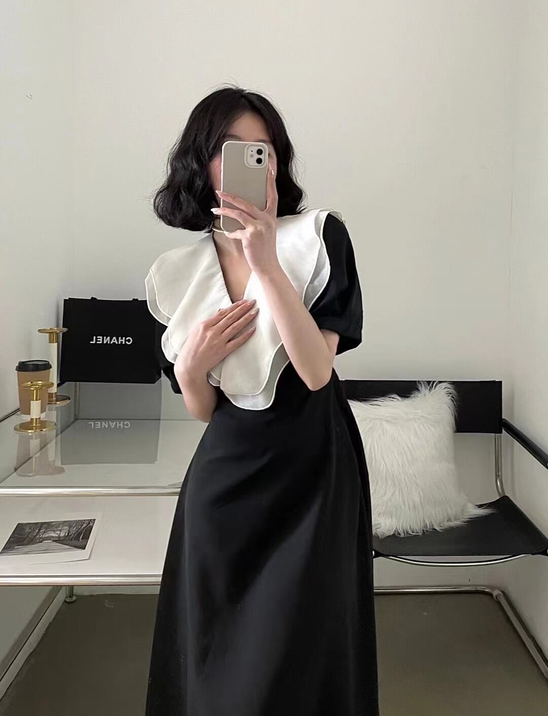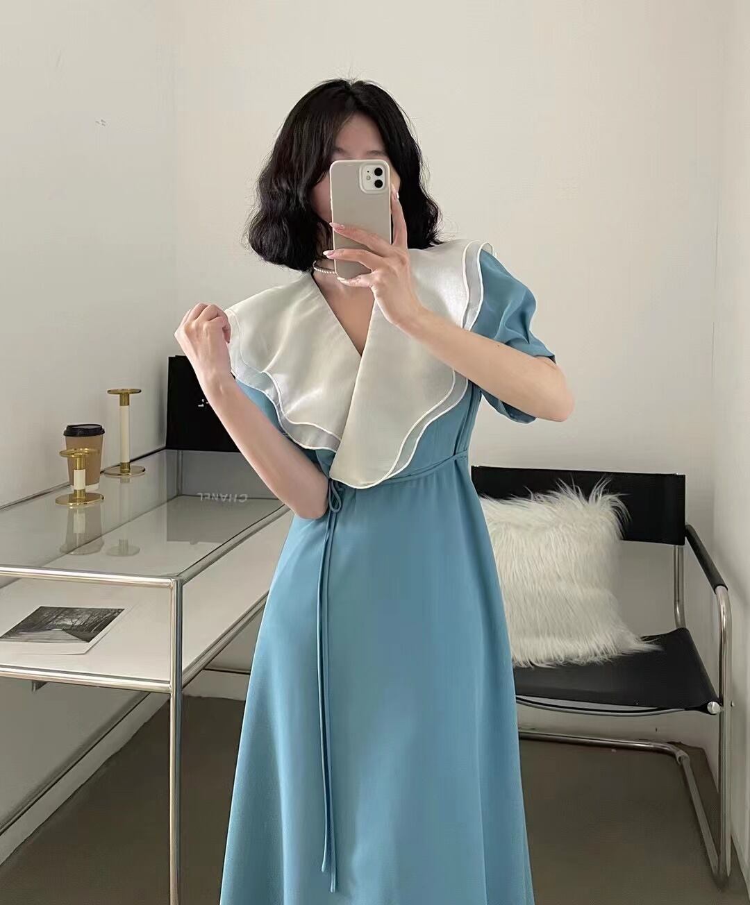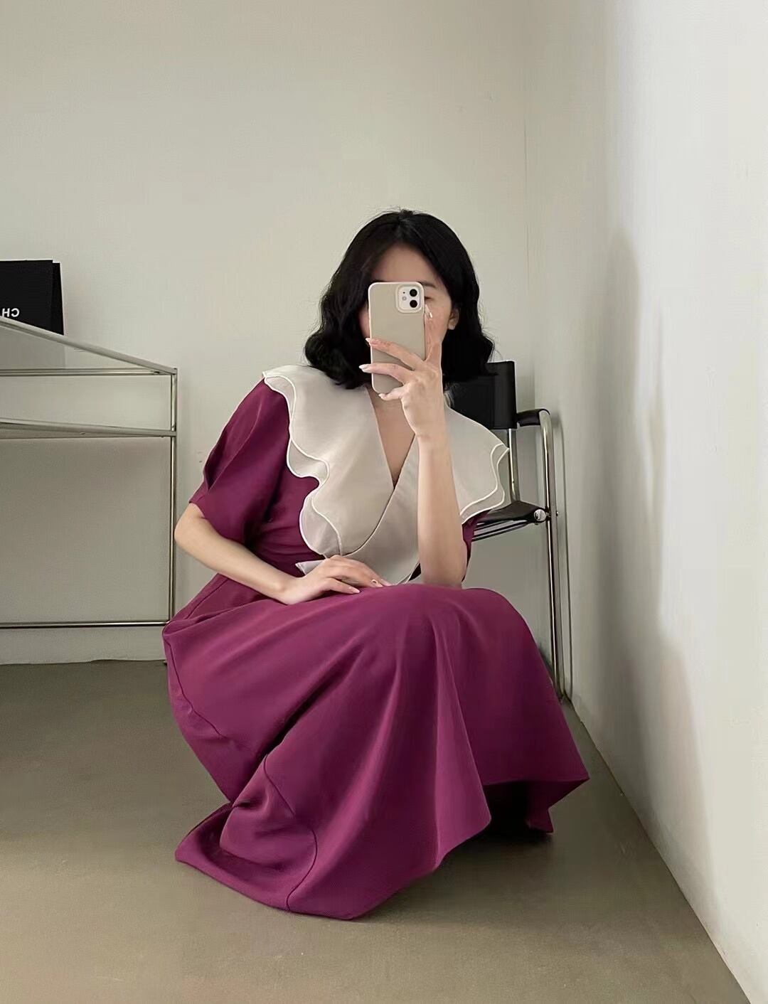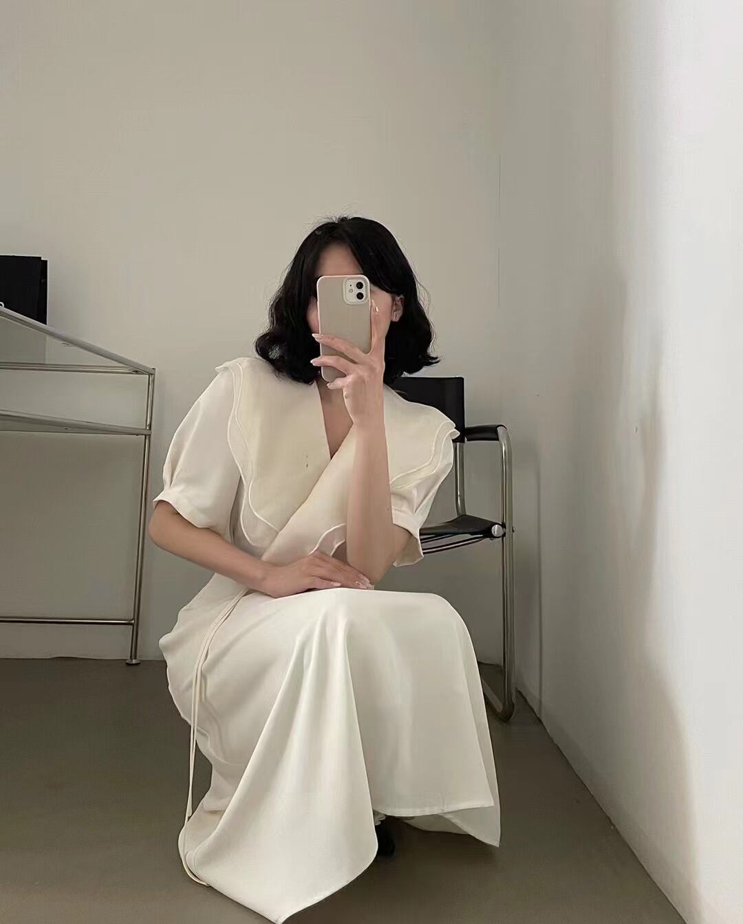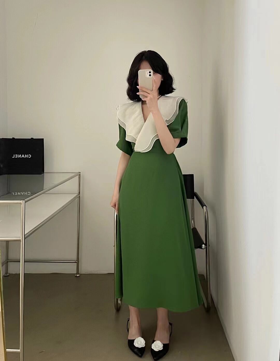 (6色選択可) ワンピース Aラインワンピース フレアワンピース ロングワンピース ロング丈 ミモレ丈 ビッグカラー 襟付き Vネック 半袖 パフスリーブ 無地 ゆったり レディース 可愛い きれいめ シンプル カジュアル 大人 かわいい おしゃれ お洒落 上品 フェミニン ガーリー 大人可愛い 大人女子 春 夏 10代 20代 30代 40代 デート お出かけ 女子会 デイリー 普段着 ホワイト グリーン ブラック ブルー パープル ブラウン 白色 緑色 黒色 青色 紫色 | Chère