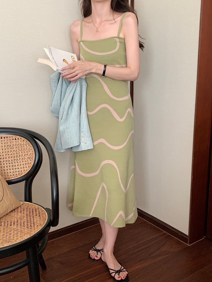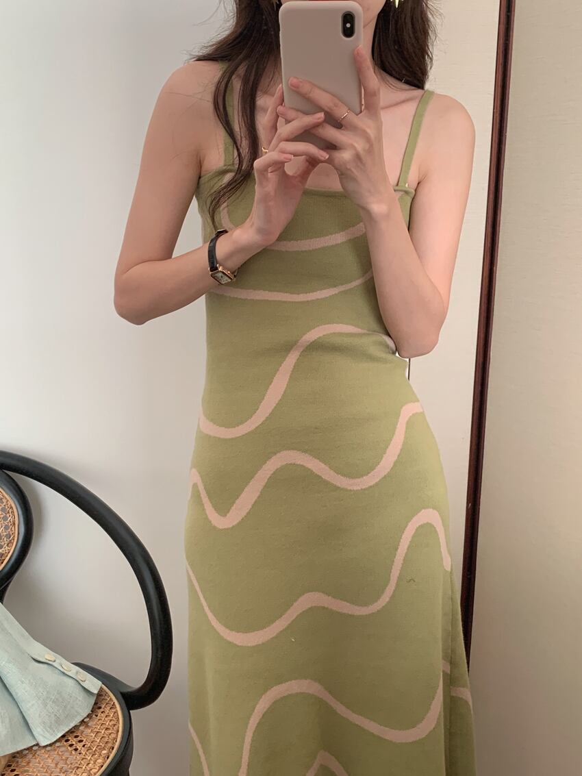 (2色選択可) ワンピース キャミワンピース ニットワンピース サマーニット ボーダー柄 Aラインワンピース ロングワンピース ロング丈 ミモレ丈 スクエアネック ノースリーブ ゆったり レディース 可愛い きれいめ シンプル カジュアル 大人 かわいい おしゃれ お洒落 上品 フェミニン ガーリー 大人可愛い 大人女子 春 夏 10代 20代 30代 40代 デート お出かけ 女子会 リゾート 海 ビーチ デイリー 普段着 グリーン ブルー 緑色 青色 | Chère