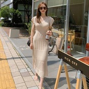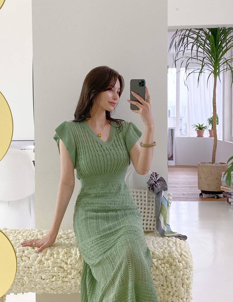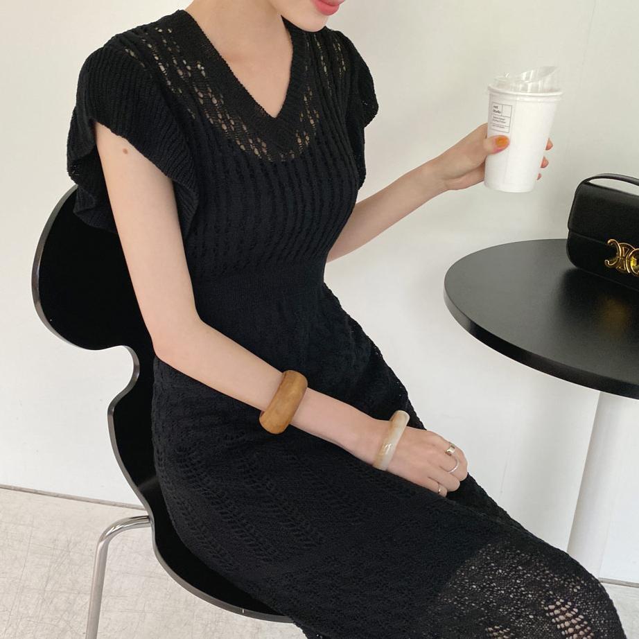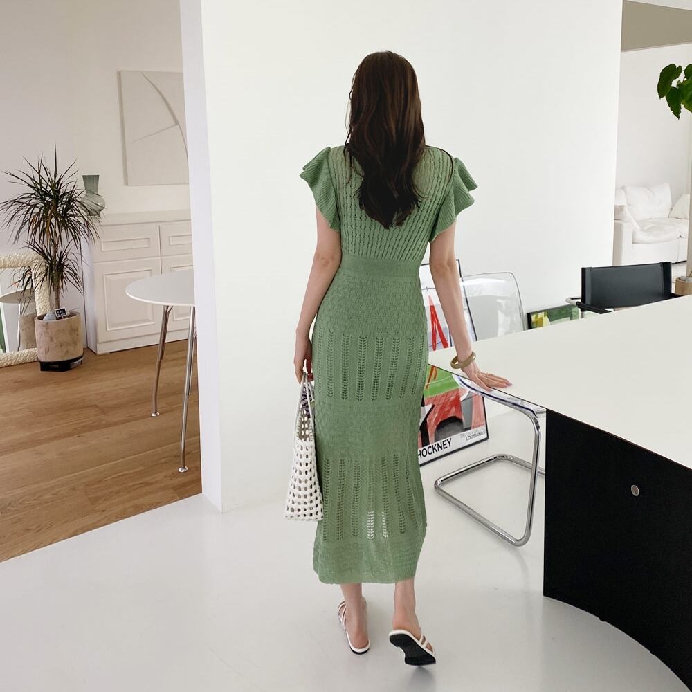 (3色選択可) ワンピース インナー セット 2点セット ツーピース ロング丈 ミモレ丈 Vネック ロングワンピース ニットワンピース フライングスリーブ スリム レディース シンプル カジュアル エレガント 可愛い お洒落 大人可愛い 大人女子 大人 かわいい おしゃれ 10代 20代 30代 40代 デート お出かけ 女子会 デイリー 普段着 モテ ファッション コーデ ブラック 黒 アプリコット グリーン 緑 無地 | Chère