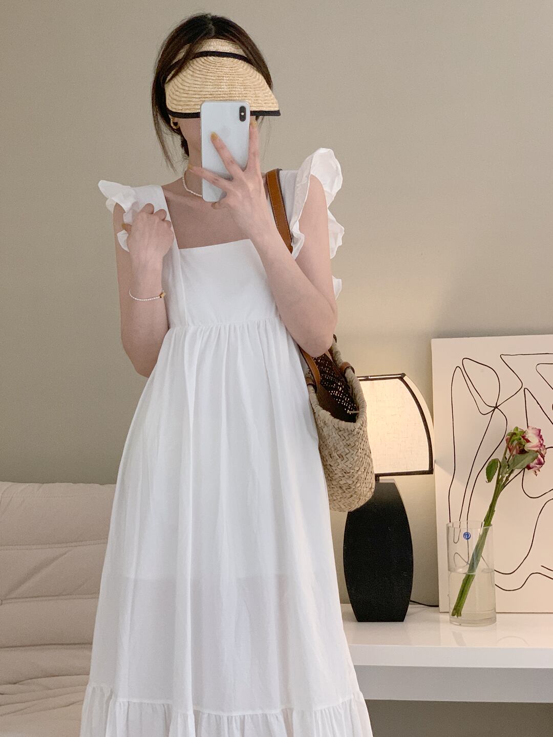 (3色選択可) ワンピース ロングワンピース ロング丈 フリル 半袖 スクエアネック バックリボン ハイウエスト レディース シンプル カジュアル キュート ガーリー 大人女子 大人 かわいい おしゃれ 可愛い お洒落 大人可愛い ワンサイズ フリーサイズ 10代 20代 30代 40代 デート お出かけ 女子会 インスタ映え モテ コーデ 韓国系 体型カバー ホワイト 白 ブルー 青 ブラック 黒 無地 | Chère
